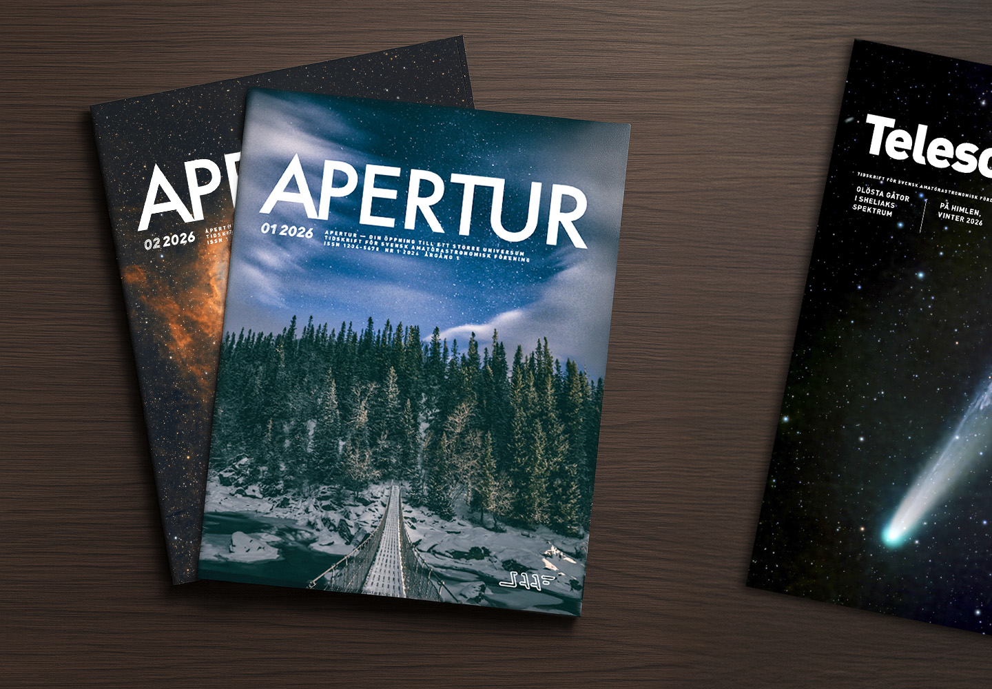 När vi skriver den här nyheten är sista numret av vår tidskrift Telescopium på väg ut till medlemmarnas brevlådor, prydd av Lars Anmarks fina bild på kometen Kometen C/2025 A6 Lemmon. Efter många år med Telescopium som medlemstidskrift tar vi nu nästa steg: Apertur blir SAAF:s nya tidskrift för medlemmarna, där första numret i april 2026 kommer att prydas av Göran Strands talande bild av en efterlängtad öppning bland molnen – där, på andra sidan den närstående utmaningen. Apertur är inte bara en ny logga, tidskriften är resultatet av ett genomtänkt arbete av hur vi framgent vill fortsätta att inspirera, stötta och samla svensk amatörastronomi.